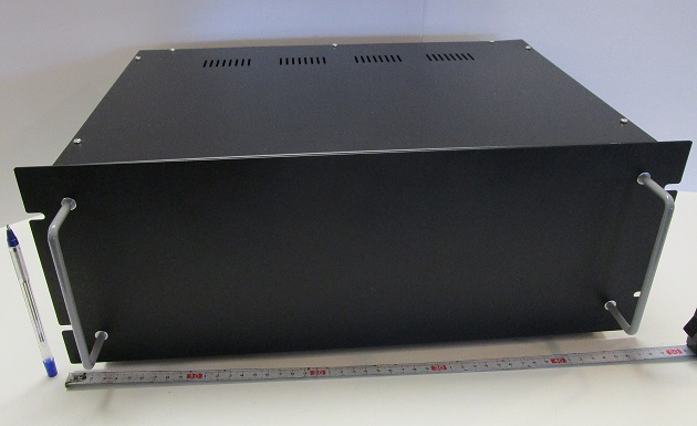 Stevige dikke plaatstalen behuizing inclusief metalen handvaten en afneembare kunststof poten.