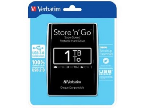 Harde schijf 3.0 Store 'n' Go, 1 TB, zwart De draagbare vaste Store 'n' Go-schijf biedt hoge opslagprestaties met een supersnelle USB 3.0-interface. USB 3.0, volledig compatibel met USB 2.0. Schrijf-en leessnelheid: 600 MB/s. 2,5 inch externe harde schijf. Compatibel met PC & Mac