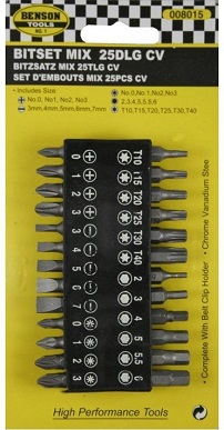 25 delige bitset met houder en riemclip.