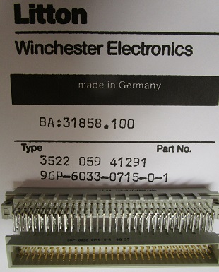 Litton 96 pin male connector in 3 rijen 90 graden hooked