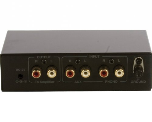 Stereo voorversterker (RIAA), geschikt voor draaitafels en andere low-level inputs zoals aux/line ingangen. Zowel in- als uitgangen voorzien van tulpaansluitingen. Met extra AUX aansluiting.