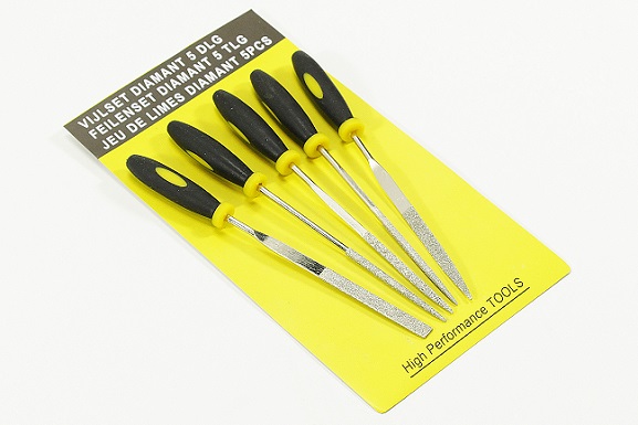 5 verschillende vormen: rond, plat, half-ronde, driehoekige en vierkante, te gebruiken voor het bewerken van glas, keramiek, kalksteen, marmer, kunststof of metaal.