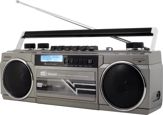 Met deze Soundmaster SRR70TI stereo radio/cassetterecorder komen de jaren ’80 weer tot leven. Luister naar uw favoriete cassettebandjes of maak eigen cassette-opnames. Het apparaat mag dan wel een retro-look hebben, de techniek is helemaal van deze tijd. DAB+, bluetooth, USB, SD en een ingebouwde microfoon ontbreken niet op deSRR70TI. Het is niet alleen mogelijk om muziek op te nemen op cassette, maar ook op USB en SD. Met de ingebouwde microfoon kunt u zelfs gesproken berichten opnemen. Uiteraard kunt u ook gewoon naar de radio luisteren. In totaal zijn er 30 zenders die u vooraf kunt programmeren en eenvoudig kunt aflezen van het digitale LCD-display met notificatie van datum en tijd. Het apparaat beschikt verder over een hoofdtelefoonaansluiting die het mogelijk maakt ongestoord naar uw favoriete muziek en/of opnames te luisteren. Bovendien heeft de SRR70TI van Soundmaster een stevig inklapbaar handvat om deze overal mee naartoe te nemen. Beleef het geluid van toen met deze retro radio die wel in een hedendaags jasje is gestoken.