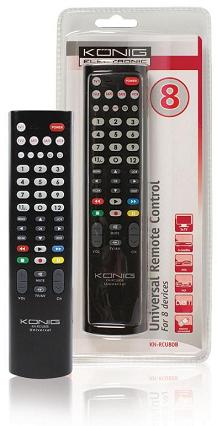Deze universele afstandsbediening heeft een uitgebreide, ingebouwde database die programmeerbaar is in twee stappen en daarom vrijwel meteen in gebruik kan worden genomen. U hoeft de codes slechts één keer te programmeren, zelfs als u de batterijen heeft vervangen. De afstandsbediening is eenvoudig in gebruik en de perfecte oplossing om uw kapotte of verloren afstandsbediening te vervangen. Deze afstandsbediening is geschikt voor TV’s, satellietontvangers, DVB-T-apparaten, en DVD- en videorecorders. Het is tevens mogelijk om 2 TV’s en 2 satellietontvangers te bedienen.