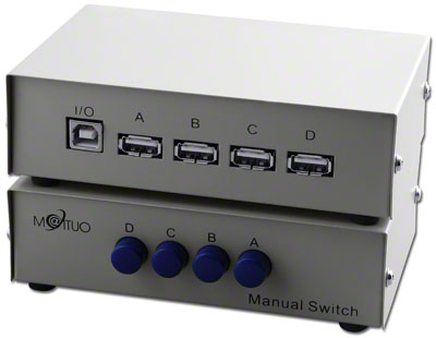 Let op: de schakelaar werkt alleen met USB-apparaten die niet continu contact met een PC vereisen, zoals de meeste printers, scanners, camera's, joysticks, PDA's, MP3-spelers en iPod-dockingstations.
