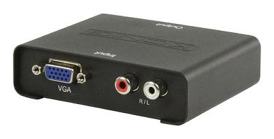 Met deze omvormer kun je het VGA signaal omzetten naar een HDMI signaal. Op deze manier is het dus mogelijk om je PC of notebook aan te sluiten op een HDMI ingang van een LCD, LED of Plasma TV. Het audiosignaal wordt aangesloten op de stereo RCA ingangen.